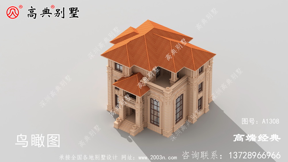 A1308号别墅设计图纸及效果图介绍: